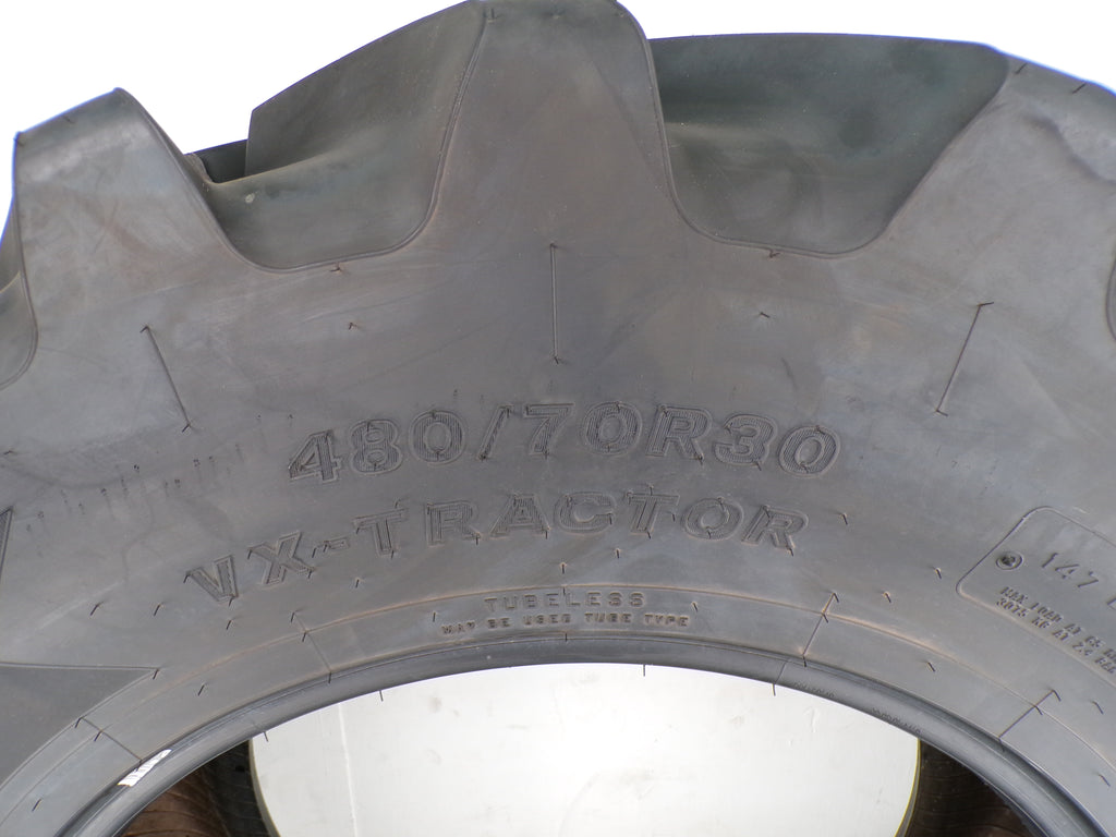 The 480/70R30 Bridgestone VX-Tractor is a premium agricultural tire that is designed for tractors with medium horsepower. It is known for its focus on traction, durability, and a long wear life. The superior traction features Bridgestone's involute lug design that provides excellent traction in a variety of conditions. Its strong casing technology provides a very resistant against abrasions, punctures, and scrapes. This provides the tire with an outstanding durability and an extended wear life. The overlapping lug design contributes to providing a smother ride for maximized comfort.